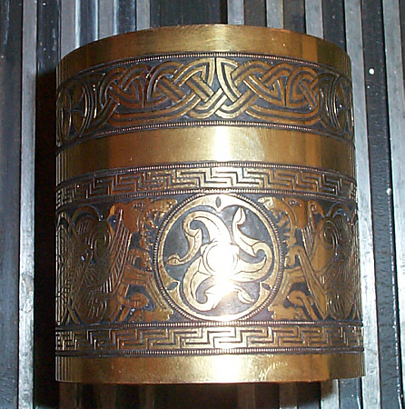 Detail of finished engraving for main stock cup Hand Engraved by Gil Hocker (Engraving not available as an option on sets)